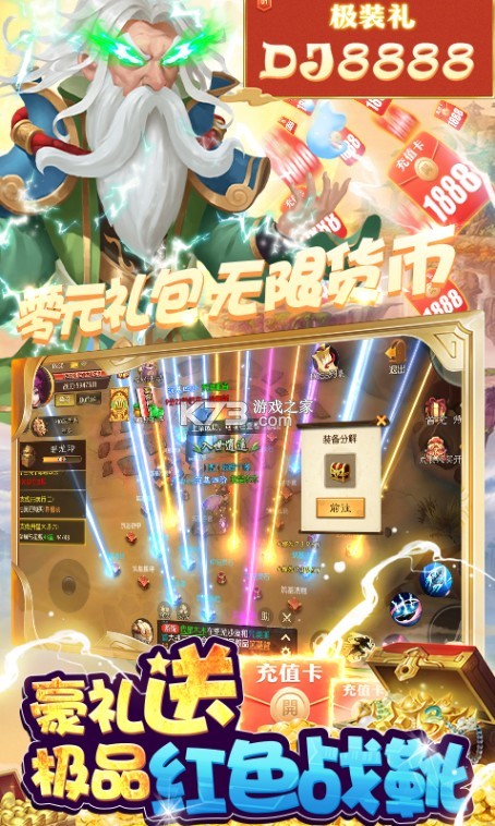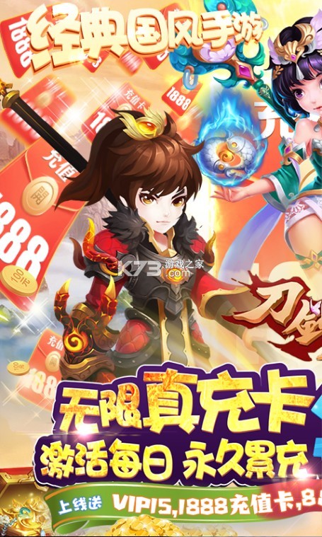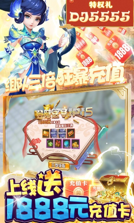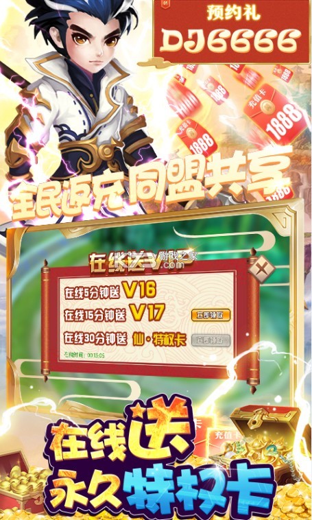 ★上线送VIP15、1888充值卡、88888灵石、1888万铜钱!
