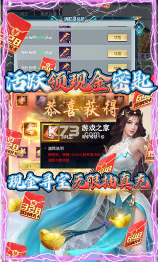 ★后缀说明:95级解锁日常后,活跃奖励可以领取现金秘钥,每天可以在万仙宝藏-现金寻宝抽100次现金卡!
