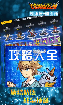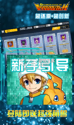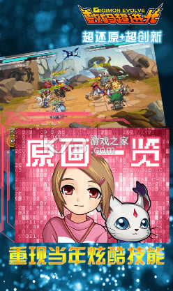 数码超进化手游是一款以数码宝贝为题材的策略卡牌手机游戏,游戏高度的还原了数码宝贝角色,一个个熟悉的名字,都勾起我们儿时的快乐回忆。快来和你的数码宝贝们一起开启冒险之旅吧
