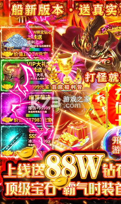 上线赠V15+88万钻石+888万元宝,独创无限刀速,无限爆R,所有装备全靠打,百种时装,独有双刀,随意搭配,爆率超高,新年新气象,超级耐玩!