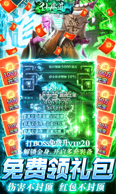 ★福利修改!更改怪物掉落机制,大量增加掉落的元宝卡,升级丹等资源,配合开局赠送的《神兽护身》,轻松获取资源!