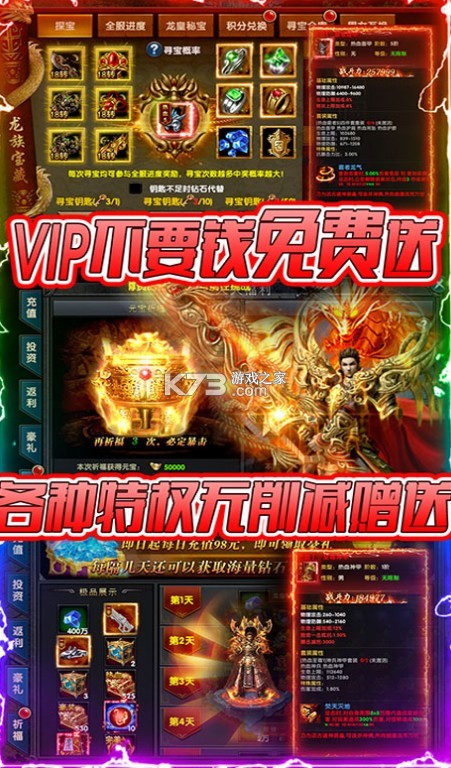 5.VIP不要钱免费送!各种特权无削减赠送!!福利超爽!!升级超快!真正的BT游戏!!