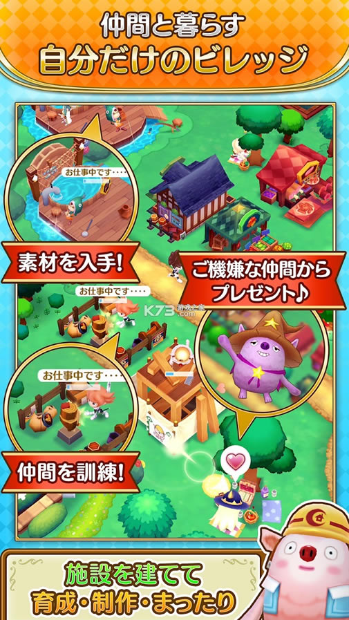 规划属于自己的精致村庄,朋友亲自拜访,共享温馨气氛;在设施内搜集资源、烹饪料理、打造武器,还能让角色工作升级!邀请好友入住小屋,快乐事件超展开!