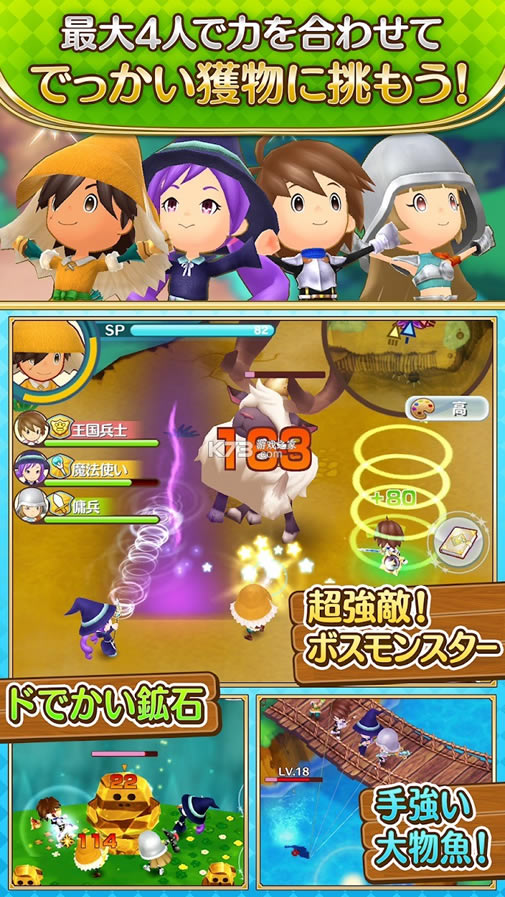 《奇幻生活online日服版》是Level 5旗下经典的日式动作rpg游戏《幻想生活》系列推出在手机平台的最新作,这款游戏以可爱的二头身角色形象以及丰富的职业而著称,玩家可以在游戏中从十二名之多的职业中挑选一个自己的职业来开始游玩,每种职业的乐趣各不相同,来体验你的第二人生吧!