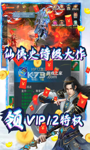 ★上线送VIP12、神充值卡及海量元宝,在线即送充值卡,元宝送不断。