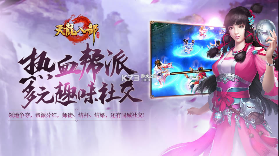 这里有酣畅淋漓的帮会行酒令,收获颇丰的帮派运镖;也有热血杀星、帮会领地争夺,参与即可获得丰厚奖励分红!还有师徒、结拜、结婚和同城交友等多元社交玩法。,与好友一同挑战宋辽大战、镜湖BOSS、横扫牡丹碗等趣味玩法。
