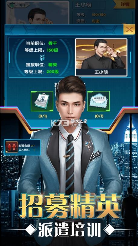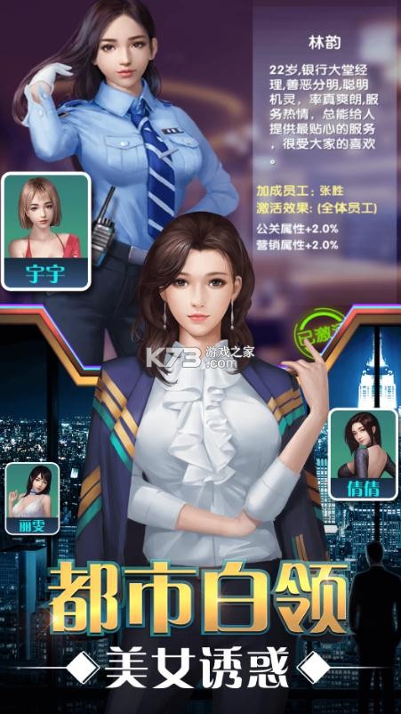 这里是大富豪的世界,汇聚了不同的商界名流,各种顶尖的精英都在这里,你要好好的经营好公司,将精英收归己用,变得更加厉害。