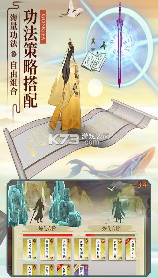 轻松挂机打坐修炼! 遍观大道三千数,三千功法随心搭配!