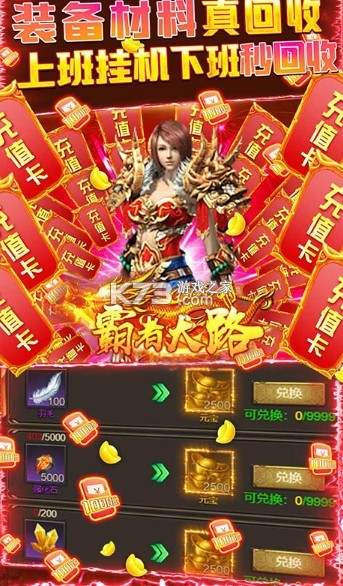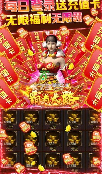 每日登录送充值卡,无限福利每日领取!超变态无敌资源百倍返利。开局百万战力。轻松虐杀所有,boss无限刷万物皆可爆!最快、最爽、最劲爆福利的传奇,等你来战!
