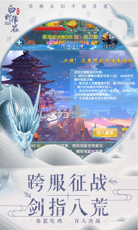 2018年仙侠巨作《白蛇缘启》正式来袭!游戏画质精美,玩法多样,100%野外无限PK。