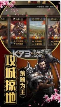 精心制作的拟真场景将带你进入真实的三国战场,著名原画师精心设计的百位三国武将都将逐一在历史中展现其名将风采。