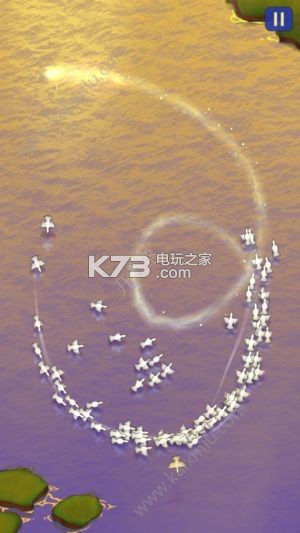 和平鸽子在巨大的湖泊中激起涟漪,转动各种方向收集更多的队伍