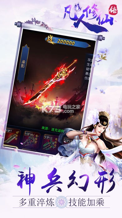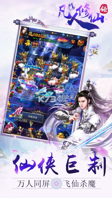 全新的人物立绘,个性十足的角色形象,打造出你的专属角色,带您进入唯美修仙世界!《凡人修仙传》采用精致国风画面效果,全新的人物立绘,个性十足的角色形象,轻松挂机升级爆装,超高爆率各种极品装备,炫酷技能激战BOSS!