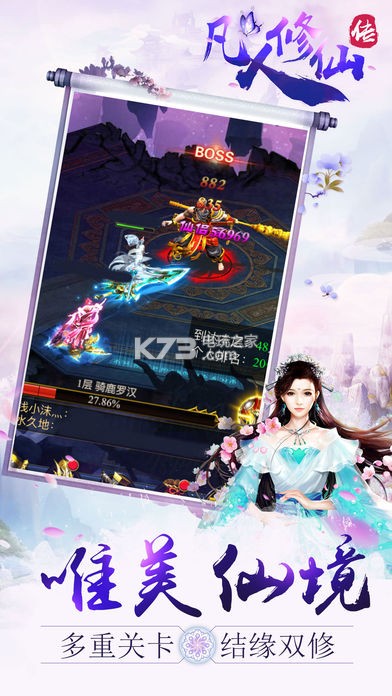 《凡人修仙传》有清奇的国风画面,在游戏里可以跨服征战,多重技能加乘无限连杀放大招横扫全服,同时有多重关卡等待解锁,还有机会喜结良缘呦!