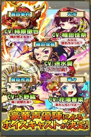 《战国物语》为您展现了如仙境般美丽的场景,悦耳动听,充斥着浓郁和风特色的音乐,精致可爱萌翻天的Q版武将角色,还有知名CV助阵,让您一饱日系声效的耳福~