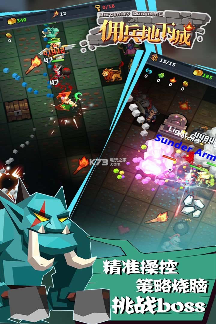 《佣兵地下城》主要围绕佣兵队伍的组建、佣兵的升级、强化、突破,挑战不同难度的地下冒险地宫展开一系列的策冒险略玩法,根据佣兵的自身特点和组合作用,选择相应战斗策略,体验西方魔幻时代的特性佣兵,成为雄霸地下城的佣兵领主。