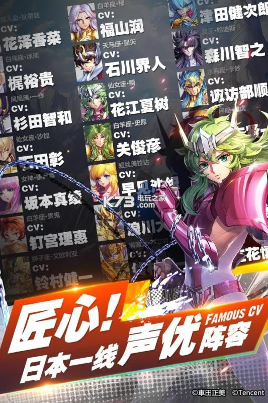 石川界人、梶裕贵、樱井孝宏、花江夏树、杉田智和、钉宫理惠、福山润、石田彰、坂本真绫、花泽香菜、早见沙织等日本顶尖声优倾力加盟,《天马座的幻想》等圣斗士经典音乐植入游戏,随声音与旋律感受不灭的热血与最初的感动。