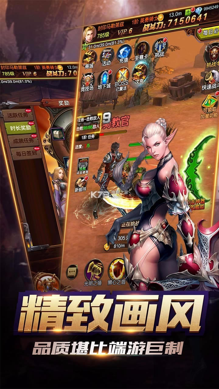 游戏中装备可以进行精炼、加星、镶嵌宝石。每一次强化,都能为玩家带来一定的实力提升,体验升级的快感。获得的装备还可以萃取然后锻造成你需要的强大装备!