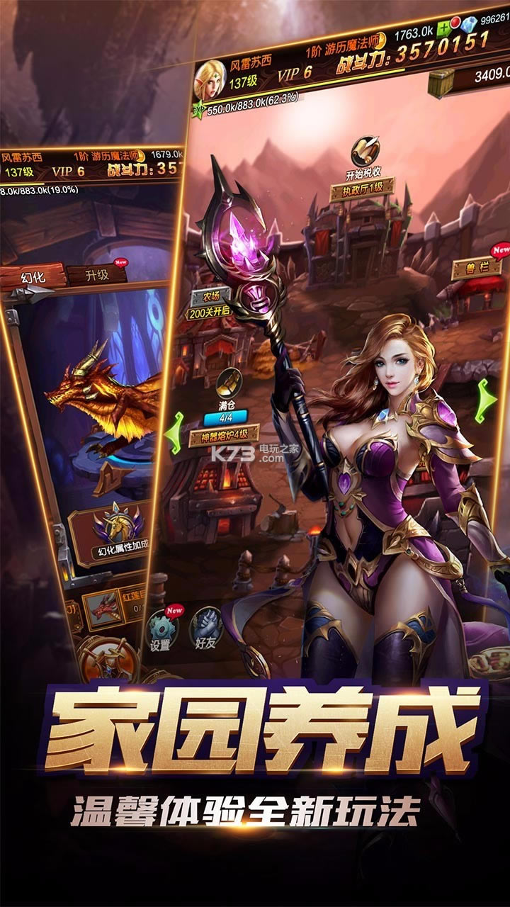 战士,法师,骑士三大职业震撼登场。辽阔无垠的西方魔幻风格地图,冰川,熔岩,草原等各式各样的奇美地形,这里有勇敢战斗的英雄,也有恐怖强大的怪物,这是人魔共聚的舞台。