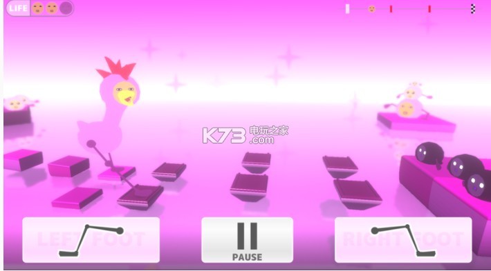点击对应按钮,让妖精迈部向前,只要走到终点即通关!