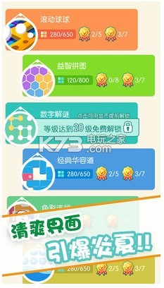 《滚动球球》是一款令人上瘾的益智游戏,游戏中包含了多种益智游戏,简约清新的界面设计,看起来非常漂亮,以及丰富的玩法模式,让你精彩玩不停,更多趣味关卡等你来挑战。