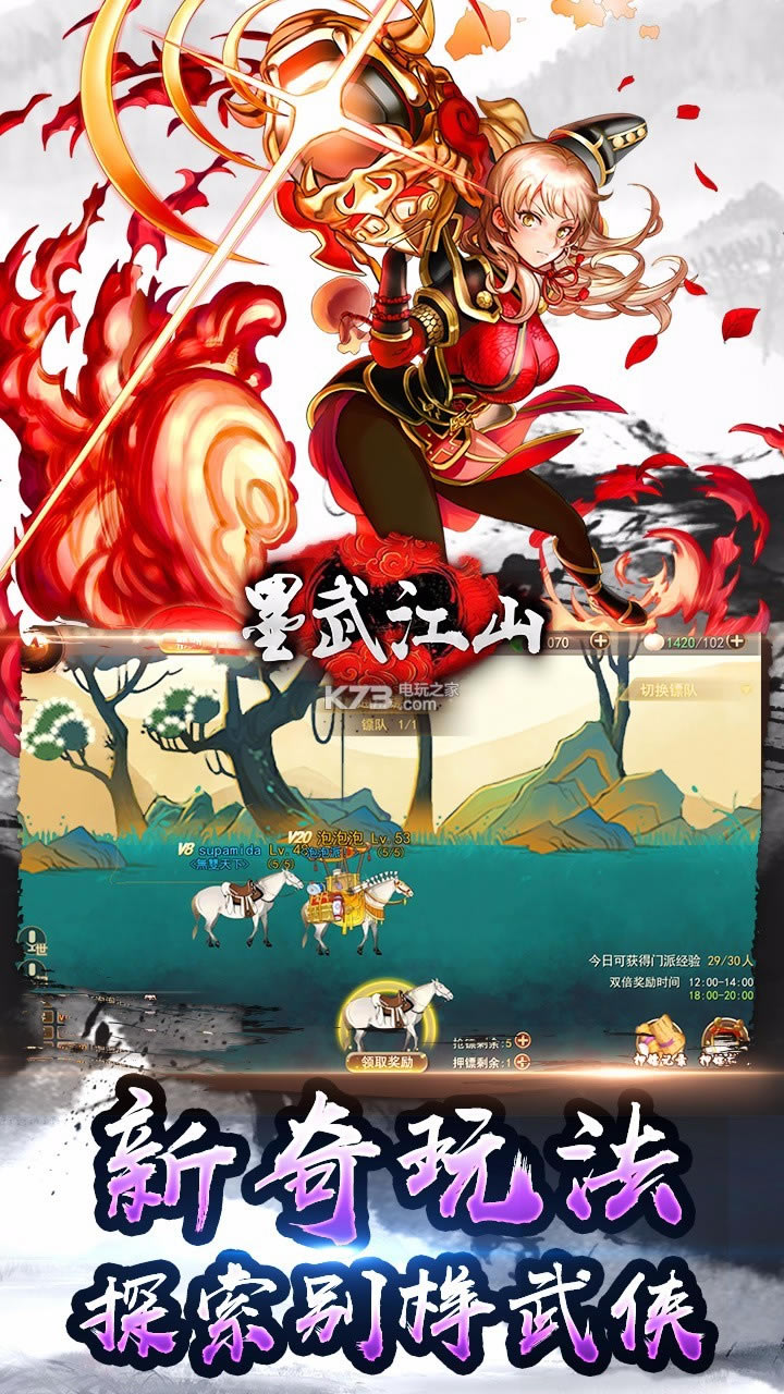 《墨武江山》的题材以东方武侠为背景,创新地将多门客培养、角色扮演、即时操控完美的融为一体,完整的故事剧情、众多的玩法系统。同服竞技与跨服竞技让体验者无不向往神秘的功夫世界,充满挑战与机遇的东方武侠情怀可以让玩家成就感和代入感更高。