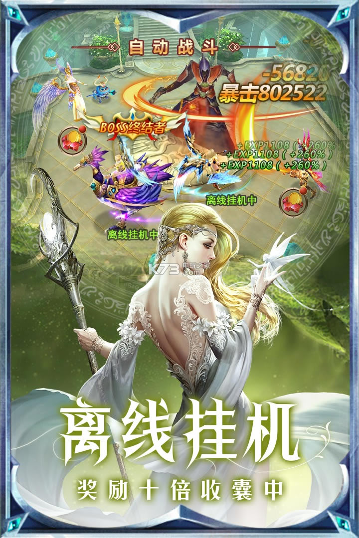游戏中你将有最为畅快的战斗体验,炫酷的技能瞬间暴发,PK爆装给你惊喜;超长挂机也能快速升级,丰富有趣的玩法系统和多样化的地理环境,魔塔、恶魔深渊、猎魔幻境、世界BOSS、守护女神等让你体验不一样的魔幻手游。