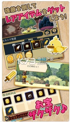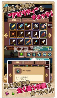 《勇气旅团》(ブレイブキャラバン)是一款带有打怪升级和道具收集要素的横版动作rpg。击倒敌方怪物能够入手到装备,各种装备即使外形及名字一样也有着不同的特殊能力,玩家可以通过收集这些丰富的装备以及结合角色的们的特性、必杀技来组成不同的战术,以自己独有的方式来攻略游戏!