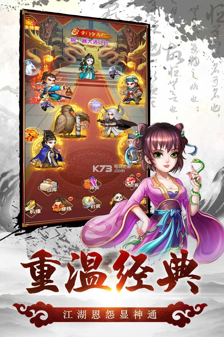 《风色群英传》带你回味经典的武侠世界,邂逅小龙女,搭讪王语嫣,与张教主对决等统统可以在游戏里完美体现,像素风和游戏流畅两者兼容,职业搭配更是精妙无比!