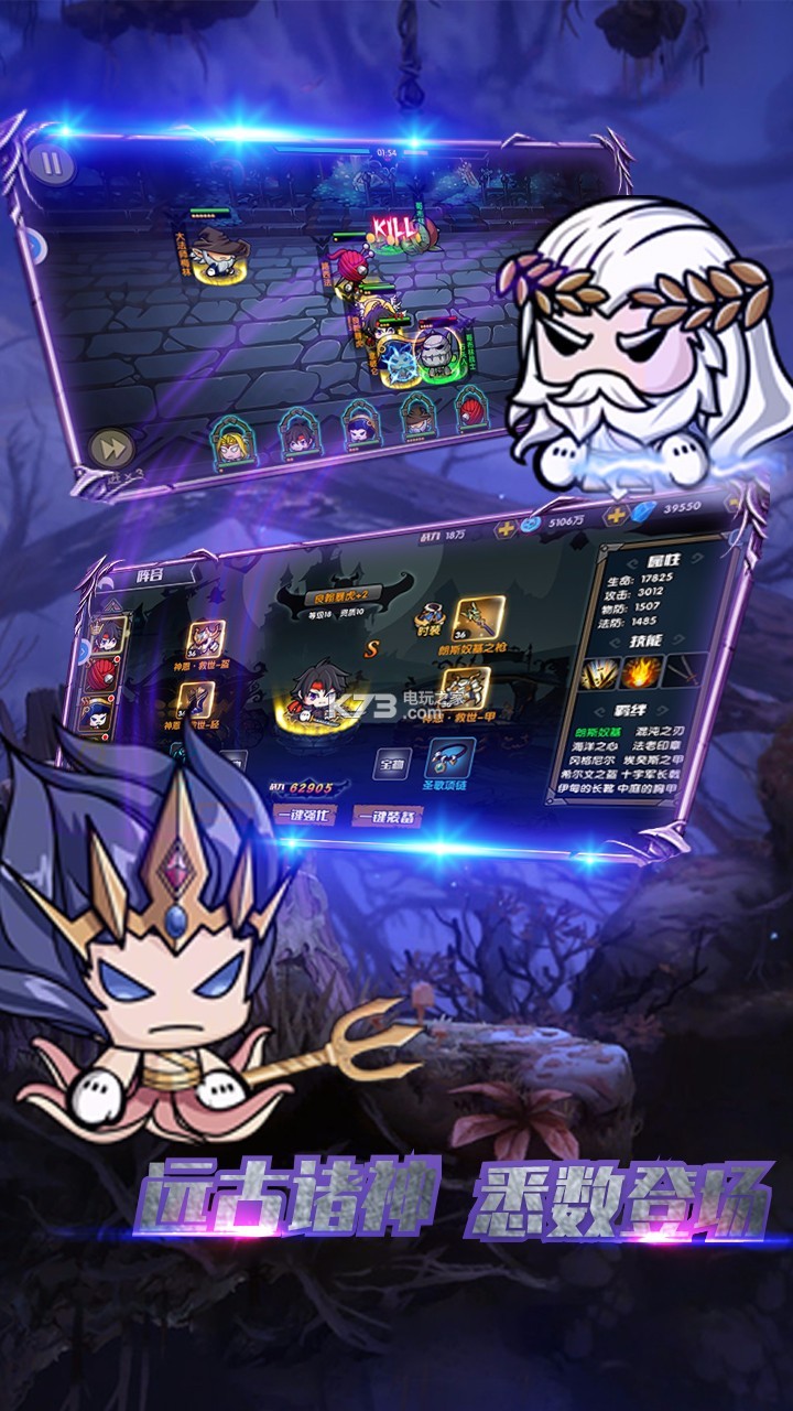 忠实克苏鲁剧情、燃爆战斗、人气角色、原版故事背景, 亲身体验三军领命,抵抗众神的热血剧情! 华丽战斗、细致场面全还原,更有多重技能特效特写! 超顶级英雄,精灵王!万人敌·斯巴达!超人气英雄悉数登场,组建属于你的强大队伍! 美杜莎魅惑之眼的全体控制,斯巴达百分之两百的伤害反弹... 多样技能搭配,超烧脑策略组合,携手打造众神联盟!