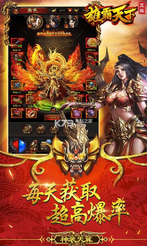 2019最新手游《雄霸天下星耀版》!百万玩家齐聚沙城!游戏继承了“传奇”的核心玩法,延续了传奇游戏的经典设定;