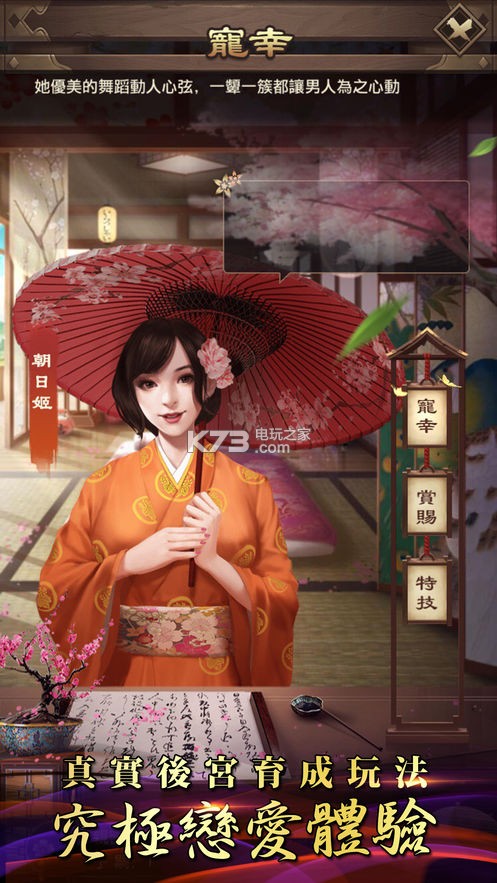 战国名美人悉数收入囊中,别样亲密互动带来脸红心跳的绝妙体验,创新生子玩法营造真实幕府代入感。