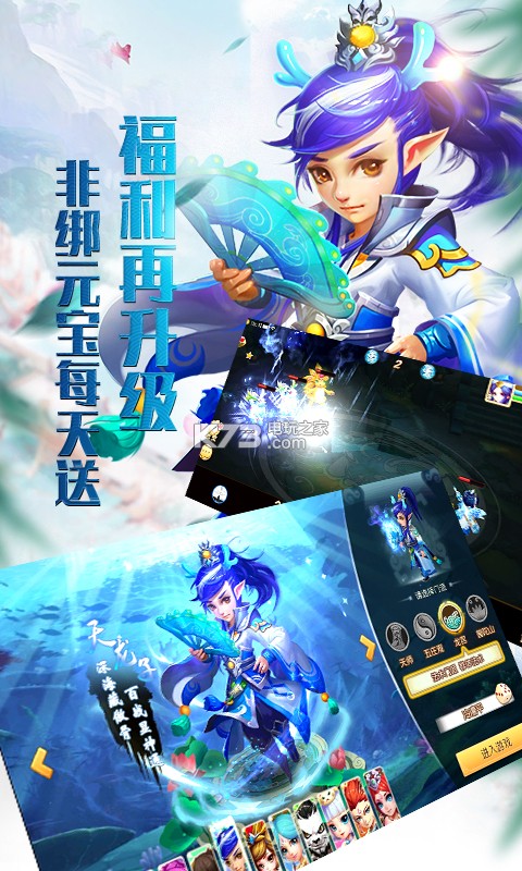 上线就送永久V15体验卡,绑定元宝*100000,铜币*1亿,中宝石袋*10,称号“50级送神兽”,登录还免费送极品武器、幻翎幻化、炫酷坐骑、超强属性称号。