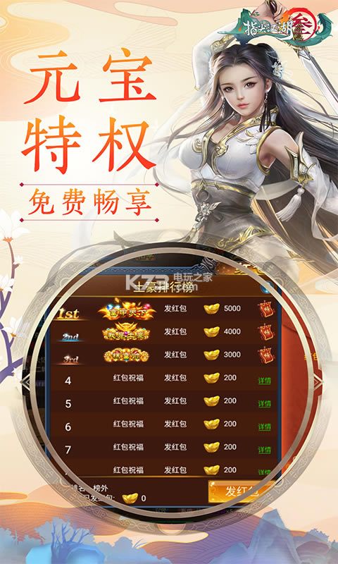 1、上线赠送vip4、5w元宝、10w金币(内测期间每天赠送500充值!)