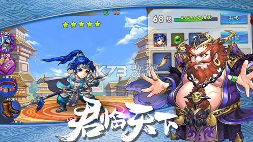 3、采用Q版卡通画风打造,各种Q萌可爱的武将造型,每一个武将都可以穿戴不同酷的时装,变换新造型。