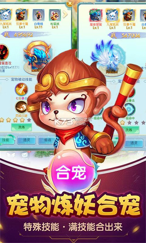 《大圣觉醒:神宠版》在后西游时代结合传统端游回合制经典玩法,以阵法设计,技能特效和多样的伙伴组合,发挥回合制的策略性特点。