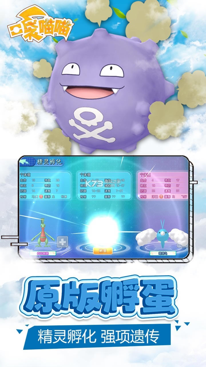 完美复刻原版孵蛋系统规则,将收集到的精灵两两进行交配,可以将优秀的个体值遗传给下一代。周而复始,经过多轮孵化,最终将诞生完美精灵哦!