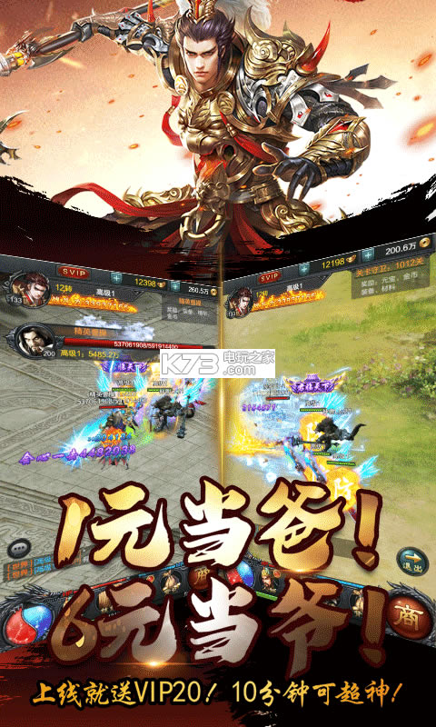 ★大汉遗旨,宝库开仓来玩就送。1元当爸!6元当爷!5分钟就超神!多重首充,豪情相送。1重5倍,2重4倍,3重双倍,充完再送一次双倍;