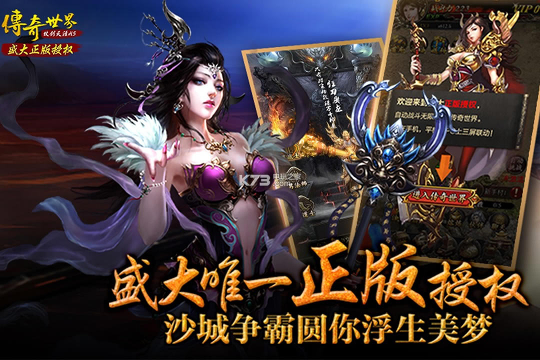 《传奇世界之仗剑天涯》正版授权传奇世界游戏。福利版本上线领取超多福利体验,经典传奇世界设定内容,热血攻沙战斗竞技设定,轻松享受夺宝pk战斗,超强boss关卡冒险体验。