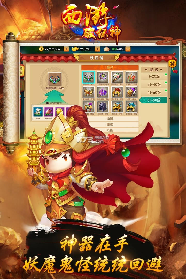 《西游破坏神》经典西游世界游戏内容。尊重原著的游戏内容体验,创新玩法让你体验新颖设定,更加精美游戏画面,畅想欢乐游戏内容,自由组合搭配战斗,感兴趣的玩家不要错过了。