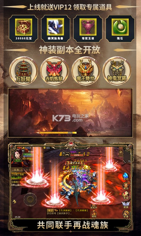 2、上线送永久VIP12,绑定元宝*38888,金币*288万