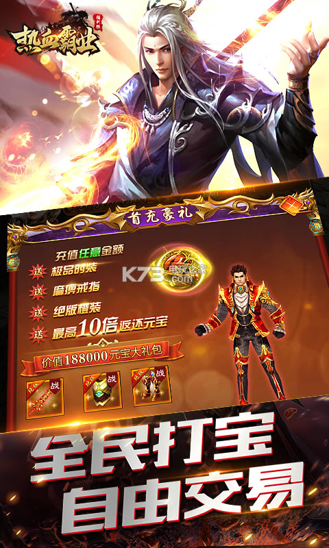 ★首充送橙色绝版武器、极品称号、麻痹戒指,并开通BOSS之家,刷BOSS无限制,战斗力暴涨10万(3角色时)助你称霸全服!