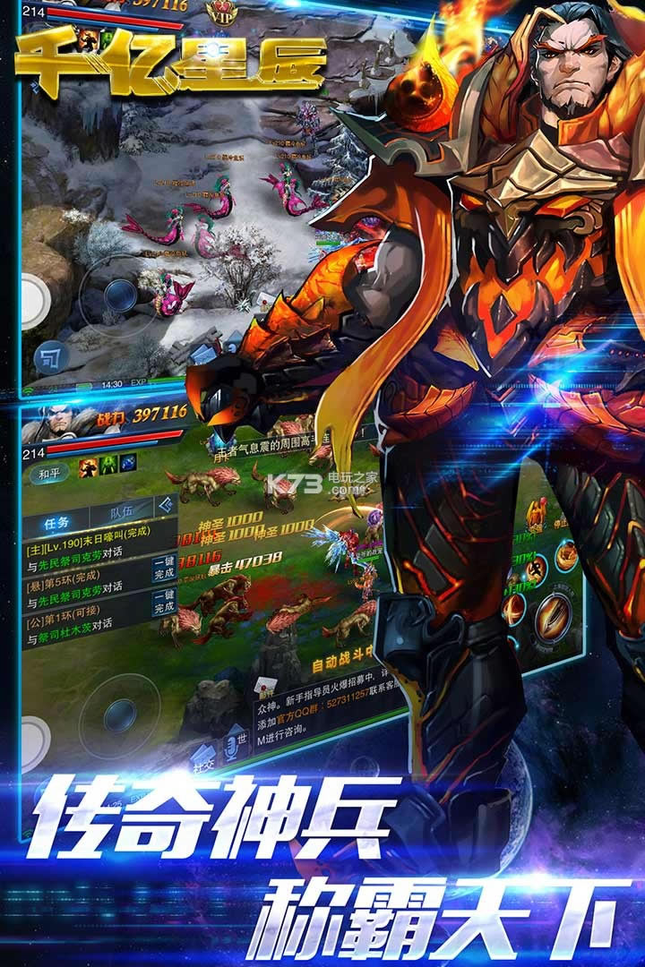 《千亿星辰》全新的魔幻奇迹题材角色扮演游戏。热血pk爆装的游戏内容玩法。自由畅快体验游戏乐趣设定,完善的社交竞技模式,极品装备轻松打造玩法,个性角色造型,真人再现对战等你来玩。