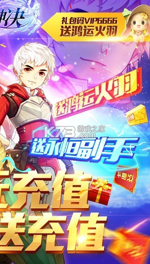 等级礼包送总计千元充值券、登录免费送充值券,上线还送星耀VIP,钻石*28888,绑定钻石*58888,金币*2888W,特殊称号*1、贵族尊享特权,让你体验土豪的游戏快感。
