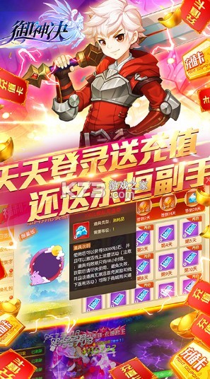 《御神决(送千元充值)》是一款以激爽战斗为核心的Q版3D炫战MMO手游。绿色版本福利大幅提升,登录7天就送永恒副手,永恒武器充值198就送!