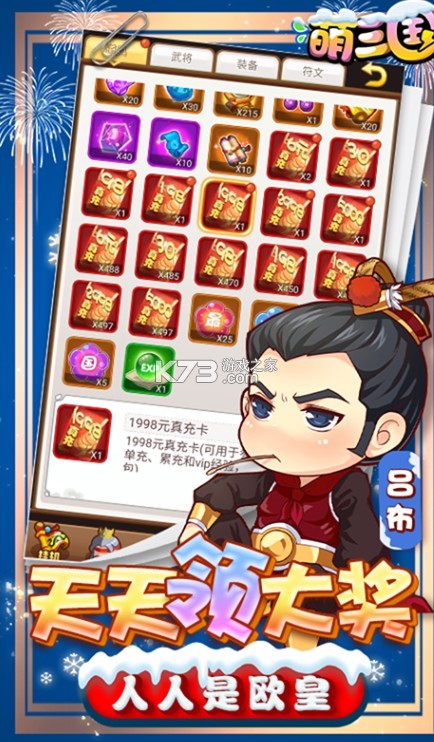 《萌三国-随意抽万充》是一款以三国战争为题材,萌系画风的卡牌手游。再现乱世烽火,英雄为战而生。