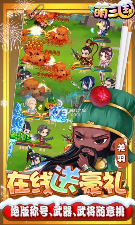 《萌三国ios手机版》上线就可以轻松得到万元充值卡,无限的铜钱和元宝可以让你的角色逐步的提升,闯关就可以轻松战斗,超多的游戏元宝都可以让你免费得到,提升自己的属性,还可以合成各种各样的武将,打造最强的三国阵容,开启你的厮杀之战.