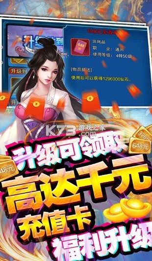 后缀说明:游戏内升级送充值卡,每天还可兑换真实充值卡超福利武侠手游《修真天下(真充无限送)》,上线送两千元充值卡礼包,每天在线抽充值卡,升级豪送抽奖代券、签到更送500000绑定元宝!
