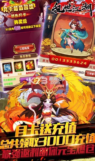 ★最强月卡福利,每日送100RMB充值卡,一张月卡总共可领3000RMB真充值、更有大量元宝材料等你拿