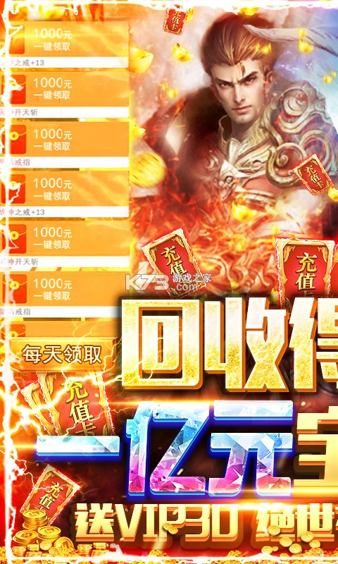 PK打宝战沙城,热血豪杰闯天下,领取免费首充直升VIP32!游戏内Boss超多,打完后还可以爆出充值卡,装备爆率高可回收百万钻石,无限真充。